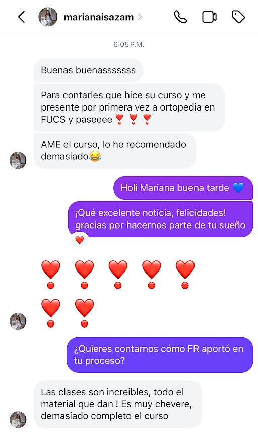«Esa buena energía y actitud se siente en todos los detalles. Muchas gracias por este proceso tan constructivo. Me encantó el curso, lo recomendaré en todas partes, muy por encima de otros cursos, y no solo para pasar a residencia».